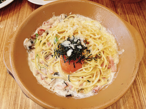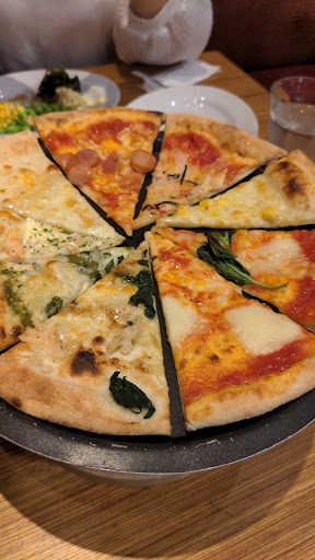ピザビュッフェを食べました! メニューの中から好きなパスタを選び,そのパスタの値段でピザビュッフェやサラダバー,デザートが食べられるというしくみでした。 別料金ですがドリンクバーもありました。 [良] ・時間制限がなく,ゆっくりとビュッフェが楽しめる。 ・自分の好きなピザを30種類のメニューの中からオーダーすることができる! ・店長?さんの接客がすごく親切で丁寧😊オーダーしたピザが焼きあがると,わざわざテーブルまで教えにきてくれる。ラストオーダーが近くなくると,ピザのオーダーがないか聞きに来てくれる ・30分ごとにしか出ないけど,チーズリゾットがめっちゃ美味しい! ・ときどき出てくるメニューにないデザートピザも美味しい。 ・パスタが絶品! [悪] ・待ち時間を過ごすスペースが狭く椅子3個しか置かれていないし,デザートやピザがおかれている場所,会計場所と近く取りにくるお客さんなどがいるので外で待たなければならない。 ・デザートのレパートリーが少ない。 ・お皿の上にゴミが乗っていてとても汚い😓 ・ピザをのせるお皿が小さく,何回にも分けてとりに行かなければならない。 ・ピザビュッフェなのにピザはオーダーしないと焼かないのか,1枚もないときがありました。 ・ピザのオーダーは石窯にいる人に言うのですが,店員さん同士で喋っていて気...