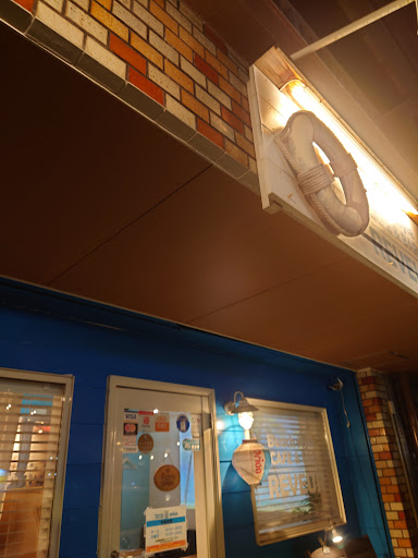 店内は、カウンターとソファ席、テーブル席があり、JPOPが流れてます。 青と白を基調とした海の家のような空間。