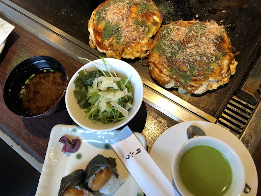 こちらの店舗はたまにランチで伺います。 出来た当初はお洒落なお好み焼き屋さんでした。が…ソファーも破れてたりちょっと古くなってきましたね。 ランチは3種類のセットがありお好み焼き・焼きそば・もんじゃから選べます! 今回は追加132円でねぎベースに変更しました。 ドリンクバーも種類があります。 サラダはもう少し量があるとよいかな…でもドレッシングが美味しいから○ 天むすも美味しいです。 お好み焼きは自分でも焼けますがいつも焼いてもらいます。 小さめと感じますがお腹いっぱいになります。味も美味しいですよ。 ポイントカードがある事を初めて知りました。 記入が必要ですが作りました。 特典が沢山。ポイントカード提示すると毎回5%OFF!誕生日月には930円値引き!デザートやサラダがプレゼントなどお得です。 また近くに行ったら寄らせて頂きます。