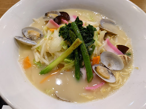2023年春メニュー「あさりとアスパラの鶏白湯ちゃんぽん」は、美味しかったです! 通常のスープより複雑なお味。 餃子ともよく合います。