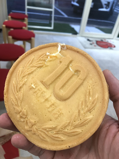 Read more今話題の10円パン! 韓国スイーツって見た目もいいけど味も良いのがうれしいね。 こちらはりんご飴のおみせですが、最近から10円パンも販売開始。 もう並ぶ並ぶ、、、 それでも他のお店よりはクオリティ高い仕上がりなのでチーズも伸びるから写真撮る人にはめっちゃ良い感じ。 もちろんパンケーキサンドみたいな甘いお菓子で美味しいし、持ち運びできるのも嬉しいです。 店内にはイートインとしてカウンターと充電器も備わってるから仕事や学校...