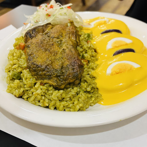 ● アロス・コン・ポヨ・コン・パパ・アラ・ワンカイナ パクチー、ほうれん草を絶妙に炊き込んだライスには、香ばしく柔らかな鶏肉が添えてあり、種類が豊富なペルーのじゃがいもにクリーミーな黄色唐辛子のチーズソースとゆで卵がトッピング。茹でたジャガイモは、ほくほく&とろけるチーズの風味がたまらなく、日本では味わえない“本物の旨み”を実感できます。