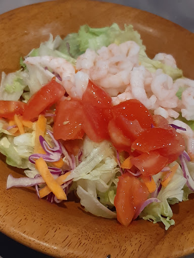 ●小エビのサラダ ここのドレッシングは酸味と甘味のバランスがよく、個人的に好きな味です。 小エビの塩味もアクセントになり美味しい。