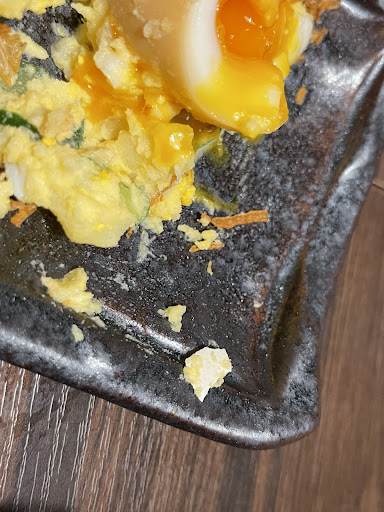 大人のポテトサラダを注文したら、卵の殻が入っていました。
