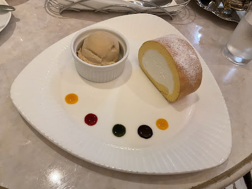 アフタヌーンティーのセットのケーキも気になりましたが (^ω^) シンプルなロールケーキとジェラートのセットにしました。