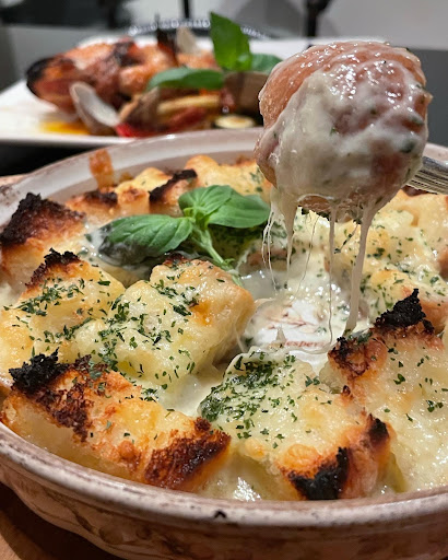 くら寿司名東店北側の建物の地下にお店があります。駐車場は建物北側道沿いに6台程止められます。夜8:30頃に伺いましたがカウンターもテーブル席もほぼ満席でテーブル席が1卓空いていてラッキーでした。周りは30代から50代くらいの客層で楽しくお酒を召し上がられている雰囲気でした。全20席強程だったかと思います。注文してから提供時間は思ったより早めでした。口コミにもあったようにパスタもかなり美味しかったです。 車でいったのでお酒は飲まず食事で入店しましたが4品サラダも含め頼みましたがハズレはなしでした。ピザや小皿料理、パスタ、リゾット、魚介は入荷したらの様でその日は魚は無かったのですが、まぐろとアボカドサラダはまぐろが売り切れでホタテとアボカドにしたのですがホタテが肉厚で食べごたえがあり、とても美味しかったです。イタリア料理のクリーム系は自分好みにはまることが過去にも2件程しかなく、ここの明太子クリームパスタは香りから最高でした。 メニューみてほかも色々試したくなり、また行きたいなと思ったお店です。 お酒を頼まなかったのでソフトドリンク頼まないといけないかなと思いましたが大きめのグラスでお水を出してくれました。 レジには有名人のサインもあり、格闘家のポスターが貼っていたのを見ていたらお店のかたに格闘家も来るよと教えてくださいました。 食事でも良いし、お酒を飲みながらでもいい場所かなと感じました。リゾッ...