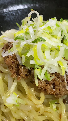 ネギ油まぜそばは細麺にもやし、ネギとたっぷりの細か目ミンチ✨ちょいとピリ辛のタレがおいしい☺️オーダー時にママさんから「カニアレルギーない?大丈夫?」と聞かれました、お気遣いありがとうございます😊ママさんの会話でチラッと聞いたのはミンチにカニ味噌が練り込まれているとのこと。なるほどカニみその旨味か〜🦀すばらしい😉