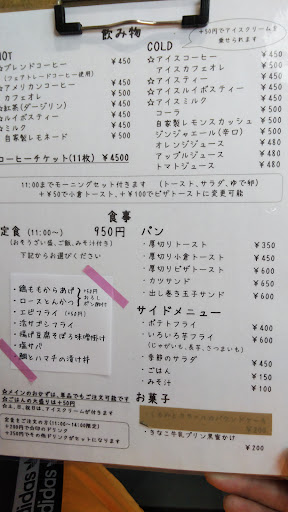 昼時の食事では何度か伺いますが、今回、ようやく喫茶店として利用させて頂きました。 そもそもコチラ、食堂なのか?喫茶店なのか?ビミョー。(笑) イヤ、定食が美味しいので。。