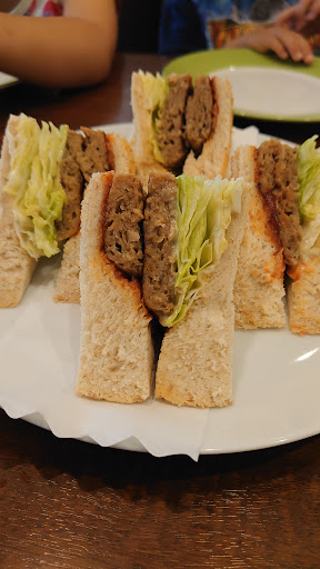 シルビア珈琲さん、直営店では無く?フランチャイズ店なの?メニューや店内の雰囲気が違うじゃん。。(笑) メニューやコーシーも、やっぱり違うかな。。。 フードも、トースト、サンドイッチ系以外置いてない。潔いナ。(笑) 選択肢が少ないので、逆に選びやすいカモ。 とりあえず、定番のアイスカフェオレとチキンカツサンド。 コーシー。。まァ、こんなモンだナ。(笑) ガムシロ、ピッチャー一杯並々に入ってる。(笑) イイじゃん。 ココをサービスされても困る。(笑) だがしかし、ココまで挑戦されたら、並々入れるヨ。(笑)甘。。 サンドイッチ。。ウーン。。好みの別れるトコロ。。 見た目、具材たっぷし、良いカンジだが、具材が多過ぎて、食べるトキにコボれやすいノヨ。。。 ハッキリ言うと食べにくいカナ? 食べたアトが見苦しくナルのね。 多けりゃ良い訳では無く、食べ易さ、適正なバランスも大事カナと思うのダガ? 千切りキャベツがボロボロこぼれるのは、みっともないし。。。 ナントカ改善出来ないモノかな。。 男性スタッフさん、接客は丁寧でスピーディーでした。 駐車場、店舗...