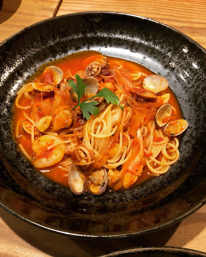 ◆ペスカトーレ 魚介たっぷりで美味しい! ピリ辛! 見た目汁気多いけど、辛さも旨味もしっかり感じられる、 こいつはオススメです😊