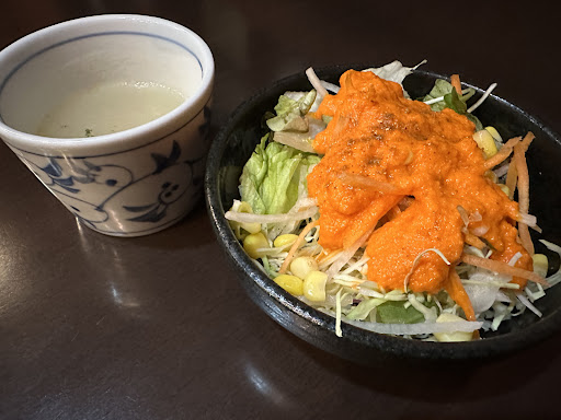 サラダと共に出てくるスープが濃すぎず飲みやすい✨ここに含まれてるスパイスで食欲増進します🐷