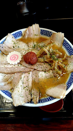 丼が卓上に降ろされると、 湯気の帳の中に姿を現す。 大輪の花のごとく並ぶチャーシューは、ただの具材ではない。 力強く、堂々と、そして美しく―― まるで一杯そのものの魂を象徴するかのように、器の上で咲き誇っていた。