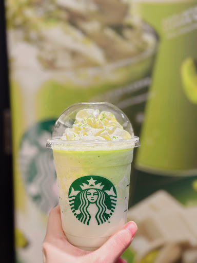 The Pistachio White Chocolate Frappuccino, which costs 678 yen. The sweetness level is a bit high, and the taste of white chocolate dominates the drink. You can taste a hint of pistachio, but it's not very strong or intense. It's worth trying, especially if you enjoy white chocolate. If you know Japanese, you can try ordering it with less white chocolate syrup. However, it's still worth mentioning that there are plenty of white chocolate crumbs in the drink, so you can enjoy some chocolate...