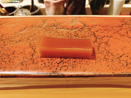 NYに行った某鮨屋の跡地にできた、寿し道桜田さんにお伺いしてきました。 結論から言うと、最高でした。 まずはシャリ切りから。お米と酢のいい香りが広がります。東海三県で取れた米、酢、水のみを使用しているとのこと。これに山葵のみをのせ、海苔巻きで頂きます。もうこの時点で今後のお寿司が素晴らしいことを確信しました。シャリの旨味、米の粒の立ち、山葵の香り、海苔の香り。どれも抜群です。 ランチは一品は一つ。この日は加茂茄子と天竜川の金目鯛の一皿。爽やかに胃が開かれるのが分かります。 そして早速お寿司。まずは大トロから。パンチのしっかりある酢飯と、寝かせることでこの時期にしては旨味を備えた大トロが合います。そして今の時期ならではの新子。この日は二枚付けで。締め方も丁度いい。お次は白甘鯛。このシャリに白身は合うのかと思いましたが、2週間寝かせて昆布締めにしたことで、旨味が増幅され、しっかり合ってました。昆布締めも、昆布の味しかしないものも少なくないなか、しっかり魚の味が感じられました。次に北寄貝。酢橘の香りと甘めの詰めが合います。 そして、この日の白眉①、鰯。悶絶しました。締め方も、僕の好みで、シャリの味と鰯の脂、薬味の香りが口内で爆発します。思わずおかわりしちゃいました。私の鰯史上一位。 ウニはまぁ普通に美味しい。そして車海老。完璧な火入れでした。8席の客に対し、3回に分けて茹でるほどの拘り。これは後の穴子でも同じでした。ややレア気味に茹でられた海老は、食感も完璧。臭みゼロ。 そして中トロの漬け。これがこの日の白眉②。食べた瞬間、森の中にいるかのような錯覚を覚えるほどのスモーキーさが爆発します。湯霜し、鮪節を加えた煮切りで漬けにするとのこと。これも本当に圧倒的で、おかわりしました。 赤身の即席切り漬けは辛子で。これも美味い。程よい酸味と辛子が合います。 ウニご飯ウニのせは特注の海苔の香りも相まって美味い。そして喉黒。炭を直接皮に押し付け、パリパリに。喉黒のアプローチはやはりこれくらいのしっかりした火入れが一番だと思います。これも悶絶級でした。 マグロのコラーゲンスープ。敢えて言えば、お寿司がしっかり目の味なので、ここはさっぱりでも良かったかもしれません。少し塩味の強さが気になりました。 最後は穴子で終了。上記のおかわりに加え、巻物(トロたく、干瓢)を追加して終了。 最後は玉ですが、ここの玉はこれまたスペシャルです。どうやったらこんな玉ができるんだろうという。それこそういろうのような玉です。