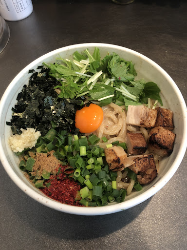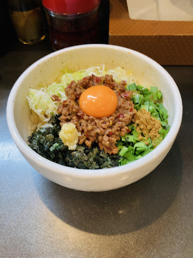 まぜそば自体好きで各店毎月行っています。 最近またまた値上がり、まぜそばも台湾まぜそばも1100円は高い!!他グループより(100円高い) 最近この本店グループは客減っているのが顕著。理由は以下に。 ・まぜそば☆☆☆ 豚肉は固めで旨味弱め。 稀に死体臭のクサさがあり鮮度大丈夫なのだろうか。鶏肉のささみ以上に固い時がある。さらに小さくなった。春日井店のグループはもう少し柔らかく旨味が有り違う。(中津川にある店はここと同じく旨味弱い) 魚粉などの旨味風味がこちら本店グループは弱い。 ・台湾まぜそば☆☆ ミンチの色が双方のグループで違います。つまりこちらは旨みコクが無い(ミンチの色が白っぽい) ・カレー台湾まぜそば☆☆☆ カレーの旨味を足した感じ。常連はこちら多いイメージです。 ・塩ラーメン⭐︎⭐︎⭐︎ やっぱりこの系列のみ出汁類の深みが足りない。あとのっている具材が違う。他グループのほうが専門店にひけをとらないくらい美味い。