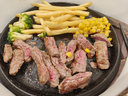 Read more肉をガッツリ食べたくて、ここにステーキを食べに来たんです 注文はテキサスステーキの180g、鉄板にポテト、Mixベジタブルともやし、メインの肉は?、生肉がカットされた状態で、だから肉が薄く熱した鉄板に、鉄板が熱々なので肉を直ぐに裏返しにするんですが、食べはじめて直ぐに火が通りすぎて、ウエルダン状態に・・・ 私はミディアムで食べたかった!私が思うステーキとは、厚みのある肉を、ナイフで切り、ミディアム位で食べるのをステーキだと思っていたのでビックリ、ステーキかと言われたら、これは自宅で食べる焼き肉だと思います? それにこのお店は箸で食べるのでMixベジタブルは非常に食べにくく、がっかりです ここで牛肉を食べる事はないと思いますが、あくまでも牛肉のステーキは駄目だと言う事です、これは焼き肉です それ以外は機会があったら...