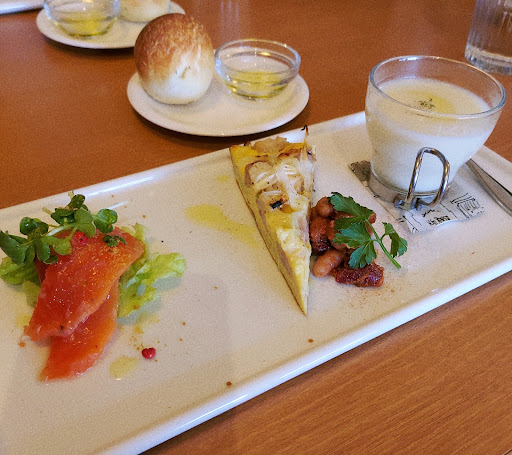 💮PRANZO CORSO 2300円(お一人様) □自家製フォカッチャ ハーブ入りで中がモチモチ 💮アンティパスト3種盛り合わせ 体に良く玄米の食感がとてもよい ジャガイモを裏ごししたあっさりでさらっとした素材の旨味を活かした冷たいスープ □プロシュートのサラダ 生ハムも塩味が丁度良く程よい酸味が効いたドレッシングがとても美味しくてチーズがアクセント 💮Pizza マルゲリータ 焼き加減も良く生地ももちもち美味しい トマトの酸味と程よい甘味そしてとろとろのとても伸びるチーズ □パスタ(以下の中からお一つお選びください) ・ペンネ アラビアータ ・スパゲッティ アマトリチャーナ 💮季節のパスタ イワシの旨味がたっぷりで香草の香り強く辛みも後からやってきた パスタのかたさも丁度良く大好きなやつだった ・スパゲッティ カルボナーラ ・スパゲッティ ヴォンゴレビアンコ