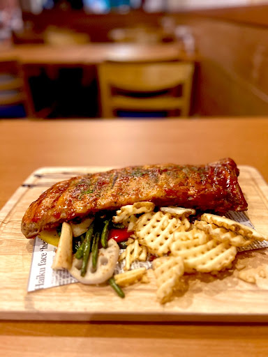 I wanted to watch a Scottish football game (Celtic-Rangers) while visiting Nagoya and the bar made the process easy, they were able to get the game and communicated clearly that they would show it. During the phone call, and also on their website, it's evident that they want customers to make reservations. That's a little unusual (to me) for a sports bar, but maybe it's a normal thing in Japan. I'm not complaining, I was happy to make a reservation. They have a great selection of drinks! I was able to have a Samuel Smith's Oatmeal Stout and also a Lagavulin 16 year old, two of my top favourites! I ordered a 300g ribeye steak with fries, and my friend had a single slab of ribs. He said the ribs were excellent, but my ribeye was just OK. It's not unusual to have some connective tissue in a ribeye, but this one had quite a lot. Certain parts were not tender, but overall I enjoyed it. The fries were undercooked, but that's not a big deal. Table service was very good, they did everything we asked, and promptly. They have a room upstairs that seemed to be for private functions, and/or karaoke. There was a big group of westerners having a sing-song, and when they left they all had smiles on their faces. The bar has a great atmosphere, big drinks selection, good food, and live football. Keep up...