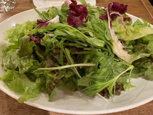 さてお料理です。 サラダは見た目ボリュームありますが、グリーンリーフを大きくカットしてるので見た目ほどボリュームなく、サラダ好きなら1人で食べきれそう笑