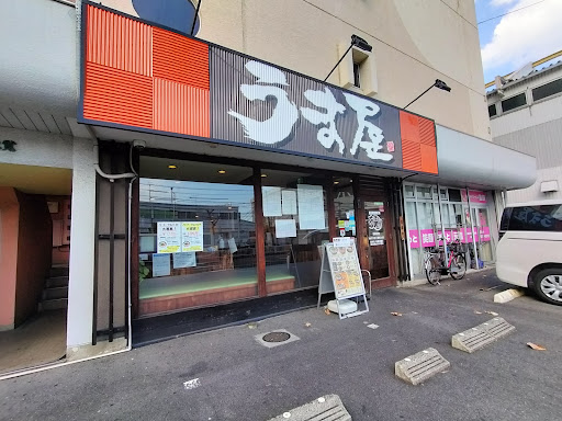 駐車場は店舗正面と西側にあり、店内はカウンター席とテーブル席が並ぶ造り。 このタイミングで約8割程の客入りで、数分後には待ちの客も出るほどの人気店。 この日は軽くラーメンを食べようと此方までやってきたが、うま屋では初めてだったが券売機でビックリ。 ご飯物は食べるつもりはなかったが、平日ランチはライスがサービスで提供されるお値打ちさ。 でもせっかくご飯物を食べるなら、名物でもあるチャーハンを食べようとこのメニュー。 厨房もかなり忙しそうだったが、あまり待たずに2品がほぼ同時に提供されたのは嬉しい。 トロッと濃厚な豚骨醤油ラーメン、久し振りだったし求めた味わいそのもので美味しい。 無料で追加が可能の九条ネギを盛り、豚バラチャーシューやニラ辛子と共に味わう。 パラッと仕上がったチャーハンは「半」との事だが、そうとは思わない嬉しいボリューム。 醤油ベースのコクある濃いめの味付け、卵やネギがたっぷり入っているのも特徴。 個人的には紅ショウガが入れ放題なのが嬉しく、たっぷり添えて頂いてしまった。 頻繁には食べたいとは思わないが、たまに無性に食べたくなるうま屋。 その気分になった時に、期待を裏切らない美味しさだった...