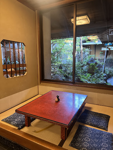 Once seated in the private room, the ambiance was intimate and peaceful, enhanced by views of the courtyard garden. The historic architecture exuded a warm, rustic charm, with its wooden details and traditional Japanese design, evoking the elegance and serenity of the Showa era.