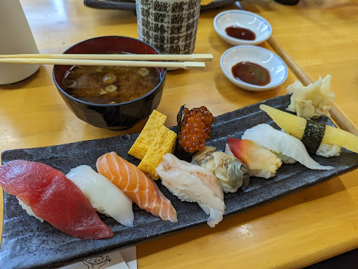 Read moreランチいただきましたがどの寿司も美味しかったです。米の粒が感じられさっぱりしたシャリがうまいと思いました。特にマグロがもっちりして味が濃く美味しかったです。 残念ながら他の方が投稿している写真よりも少し下方にネタが変更されており茶碗蒸しもなかったです。 並の方は少し物足りないラインナップで上には貝2種やイクラなどついてきて差があったので上がおすすめです。 あら汁は色んなあら入っていて出汁がいいですが味噌も濃くしょっぱく感じた。 篠島産味付け海苔が巻物に使われておりなかなかに味も香りも強いのでこれは好き嫌い分かれそうです。 街中の行列店のようなパフォーマンスはないが混まずにこれだけ美味しいものが食べられるな...