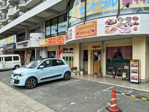 駐車場は店の前3台と近隣のコインパも使えるそーです。通行量が多いんで気を付けてね。マンションの1Fの店舗外観はインド料理店らしくオレンジ色の看板に写真や文字が躍ってます。
