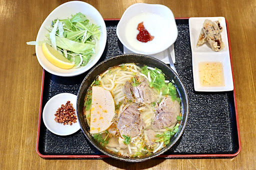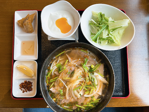 Read moreランチで訪問、日替わりランチAセットをいただきました。メインはフォー(牛、鶏)、ブンボーフエから選択可能で、この日はブンボーフエを選択。ベトナムの温かい牛肉麺で、麺は中太の丸麺です。具材のパクチーの香りがニュクマムベースのスープとベストマッチ、味はなかなか美味しかったです。麺はやわやわでコシがなく食べやすかったです。味変用にレモンと唐辛子がついてますが、唐辛子を全投入すると一気にまあまあな辛さが加わり、額にうっすらと汗が滲みます。辛さが弱い方は入れない方がいいと思います。揚げ春巻とデザートのヨーグルトは普通でした。あと単につけ忘れただけなのかはわかりませんが、ミニサラダにドレッシングがついてませんでした。税込1250円、ブンボーフエの量がやや少なくコスパは微妙です。平針の運転免許試験場の目の前という立地もあり、昼間はお客様がまあまあ多かったですが、クオリティーとコスパで考えると再訪は微妙なところです。現金会計のみ、店舗北側に無料駐車...