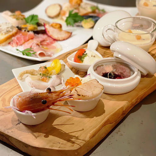 Read more世界で活躍するアーティストたちのアートが溢れた空間で堪能する欧州料理🍝 オープンキッチンに面したカジュアルな「カウンタースペース」から 中庭を眺めながらコース料理が堪能できる「テーブルフロア」まで。 普段使いから特別な日まで 自由自在に過ごせるサービスを提供してくれます⭐️ 移転前の名古屋駅付近とはガラリと変わり 本当に素敵なお店になっていてビックリした‼️ 床から天井を隅々まで見渡してほしい🎶 ランチは土日のみの事前予約制で、食後にデザートセットもあります🍰 今回はディナーコースをご紹介します📝 案内された席がテラス席みたいな感じで 夜という暗さと灯りで大人な雰囲気💕 冬なのに暖房がしっかり効いていて暖かかった♪ 専属DJもいてカッコいい他ない‼️ ⋱⋰ ⋱⋰ ⋱⋰ ⋱⋰ ⋱⋰ ⋱⋰ ⋱⋰ ⋱⋰ ⋱⋰ ⋱⋰ ⋱⋰ 🍀コースA (💴6000) VIVI自慢の前菜15種盛りからスタートする3種のコース。 当日予約もOK🙆♀️ ソムリエの方にワインのペアリングをお任せしました🍷 最初に出されたシャンパンからもう雰囲気最高でテンション上がった😍 ⚫︎VIVI 前菜15種盛り (自信ない笑) ・ボタン海老のカルパッチョ ・帆立貝柱といくらとクリームチーズのカルパッチョ ・軽くボイルしたタコのカルパッチョとワカサギのフリット ・セロリのポタージュスープ ・フルーツトマトとモッツァレラチーズのカプレーゼ ・あいち鴨のロースト(フォアグラを何かしたものを乗せて) ・プロシュート ・ハモンセラーノ ・生サラミ ・モルタデッラ(ボローニャのボイルハム) ・ムール貝の香草バター焼き ・クリームチーズのクロスティーニ (アンチョビやソルトペッパーを刻んで) ・若鶏の軟骨入りポルペッティ ・自家製鶏ハム ・黒い大根 ⚫︎北海道根室産白子と小海老のアヒージョ 自家製フォカッチャと共に。 このフォカッチャが美味しいんだけど 絶対にお腹苦しくなるからおかわりできなかった(><)💦 ⚫︎イベリコ豚サルシッチャのトマトパスタ イタリアのソーセージがゴロゴロ入ってた♪ 麺に唐辛子が練り込んであって、めちゃ辛いけど ペアリングしてくれた辛口赤ワインに合う✨ ⚫︎あいち鴨もも肉のコンフィ カルダモンの香り 3時間程度に煮込んでレア感&肉感を出したコンフィ。 表面を軽く焼いて仕上げてあって カリッとした食感と、鴨肉の甘くてしっとりした旨味が美味しかった❤︎ ⚫︎パティシエ特製スイーツ 5種類あるスイーツの中で、モンブランパフェにしました🌰 これはまた後日の投稿で紹介します🎶 すごいお腹いっぱいになって 久しぶりにワインでほろ酔いにもなって 楽しかったです🌸