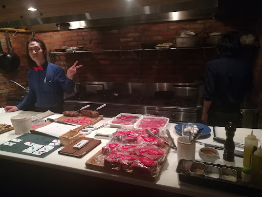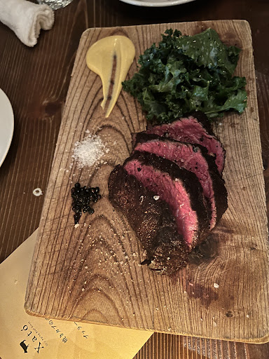 Read moreThey have great selection of hand carved steaks and they bring them to your table to pick out. Your steak is then quickly browned in a hot cast iron skillet, then put in an oven and slowly cooked to your desired wellness. Do not be in a hurry when you stop here, it takes a while for your steak cook then rest before it makes it to your table. The marbling on the 40 days aged Wagyu meat is a sight to see. Steaks run between $19 - $22 per 100g. And they weigh between 300g.-700g. This is a must stop place if your...