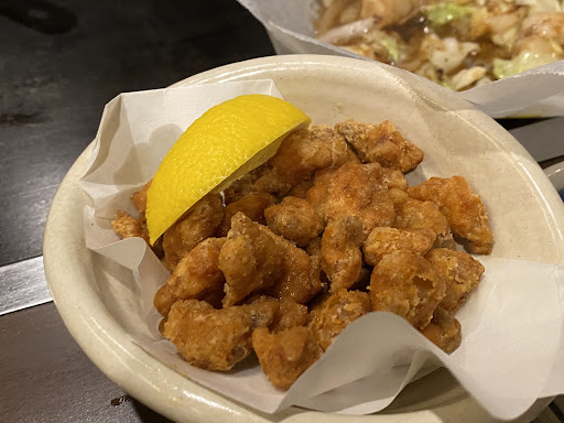 2人で やいてこちゃん玉(1298円) もりもりミックス玉(1353円) 豚焼きそば(1045円)を注文。 飲めないので「お水2つください」とお願いすると、「うちは居酒屋なんで覚えておいてね」と釘をさされる。 「???…飲めなくてすみません」→無言 「子どもと入って大丈夫ですか」と聞くと「大丈夫」と言われ、その後居心地の悪いチーンとした空気で食事をしました。
