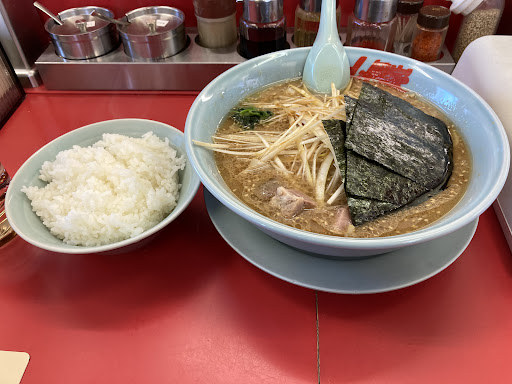 さて、人生初めての山岡家。 食券を発券したものの、前述の通り店が回っていないので、勝手に空いてるカウンターに着席。 手が空いたスタッフに食券を渡します。 味噌ベースのネギラーメンとライスを注文しました。