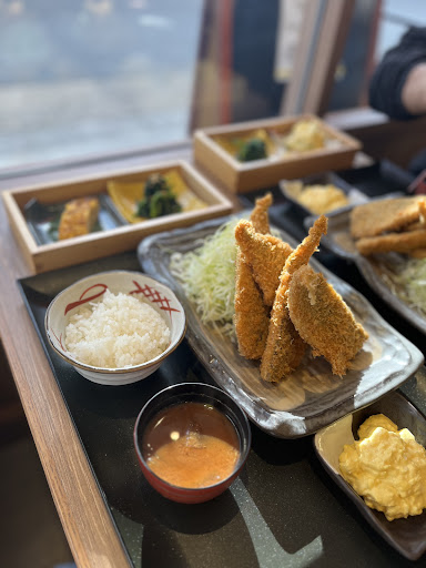Read more妻のお気に入りなので先日来店しました。私はアジフライランチ 妻は煮魚ランチとしました。煮魚については立派な鯛の煮つけがまるっと一尾盛り付けしてありました。妻は魚を食べることが苦手で骨や皮に身がついていても食べずに終わるのですが、びっくりしたことにこの時はとても綺麗に食べきっていました。アジフライは4尾ついていて、肉厚で非常に食べ応えがありました。 かなり以前にTVで紹介されたころから人気の店ですが、土日祝日が休業なので、平日に行くしかありません。今回も11時半すぎに行きましたので、待つことはありませんでした。12時過ぎまでいましたが、あまり来店客も無く、ときおり弁当を買う人が数名来たぐらいでした。ランチの値段はどんどん上がっており、ちょっと遠ざかる要因はあるかなと思いますが、このご時世しかたがないかと思いました。あじフライはとても美味しく、煮魚もしっかり味があって、お互い満足して帰りました。 要望 1.小鉢が2品あるのでアジフライは4尾いらないので、2尾 ぐらいでもう少し安価にしてほしい。 2.アジフライとエビフライのミックスランチがほしい。 3.小鉢一品、アジフライ1尾、エビフライ1尾のランチ(安価)なものがほしい 4.弁当を店内で食べたい(食べれるか食べれないかは不明)