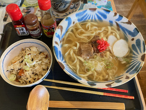 たまたま見つけたソーキそばが食べれる そう言えば沖縄行った時ソーキそば食べてないわと。 麺シコシコこしあって美味しい😋 スープもあっさりまろやかしてとろっとろに煮込んだスペアリブモリモリで美味しい😋 ジューシーという炊き込みご飯も優しいお味 スープをかけてお茶漬けにしても美味しい😋 そしてさんぴん茶 ホテルに行った時にTパックがあって飲んだけど それよりも味に深み渋みがある そして歯がツルツルになる こんなにも差があるとはな。