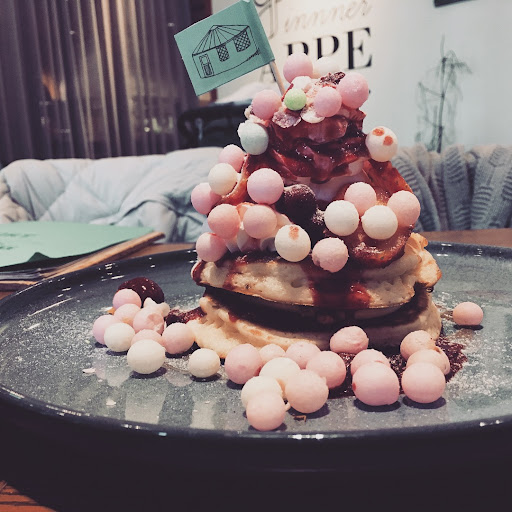 Warmly furnished cafe with artistic accents, furnishing American provisions, BBQ plates & pastries.