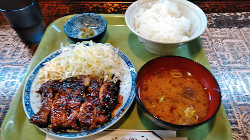 食堂銭屋さんの定休日は、日曜日だと思いますので平日の再訪です。 前回、私も妻も揚げ物のセットを注文し、揚げ物は美味しかったので、今回は揚げ物以外の鶏の照り焼きセット500円をお願いしました。 銭屋さんの『セット』は、定食のことで、ごはん、赤だし味噌汁、漬物が付きます。 ごはんは、大・中・小から選べて、大は、腹パンになりそうな量なので、中にしました。 嬉しいことに、ごはんの大・中・小で値段は変わりません。 一番多い価格帯は500円のセットです。 一番気になる味ですが、鶏の照り焼きには焼き鳥のタレのようなもの(店主へ未確認)が、かかっていてコクがあり味わい深く、見た目のような辛さは感じません。 刻みキャベツもたくさん盛られ、スパサラも付いていて、とても美味しくいただきました。 もう、銭屋さんには感謝しかありません。 是非、メニューの料理を制覇してみたいような気になります(笑) 勿論また伺います🎵 ************* 2月22日(土)久しぶりの訪問。
