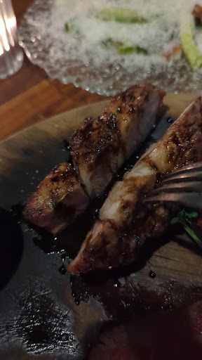 ○ズイジ一グリル2人前の厳選赤身肉2種 (熟成豚orカモ胸肉orラム) 2508円 ○ゴルゴンゾーラムースとハチミツの ブルスケッタ 1P385円 ○がっつり野菜コブサラダ(2人前 660円) ○海老のアヒージョ(2人前 715円) ○ハーブ塩のフライドポテト 594円 ○下町ボロネーゼスパゲティーニ 1210円