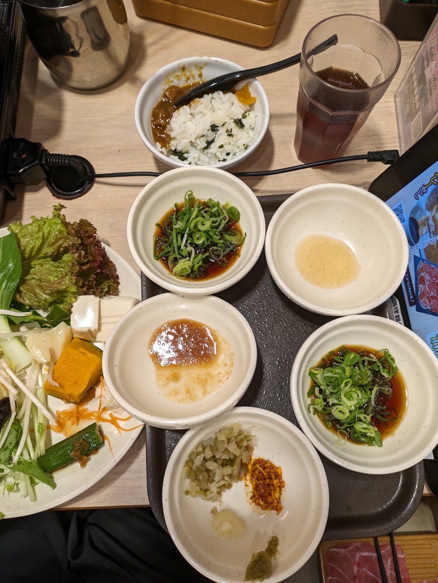 そしてなんといっても平日は時間無制限でゆっくりできること✨✨ 出汁が基本は白だし、プラスで出汁をもう1つ選べます プラス料金で出汁を4種類にする事もできるみたいです 私達は白だしと鶏がら醤油だしにしました♫ 鶏がら醤油だしはタレなしでも味がしっかりあって美味しかったです😋