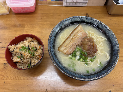 沖縄そばで味噌を使ったものは珍しいので「赤から味噌そば」と「じゅーしー」を注文しました。 麺は喉越しがよく、スープは味噌の味がしっかり感じられてとても美味しかったです。じゅーしーも美味しくて、注文して良かったと感じました。 今回は味噌を選びましたが、とても美味しくて普通の沖縄そばも気になり、また来たくなりました。