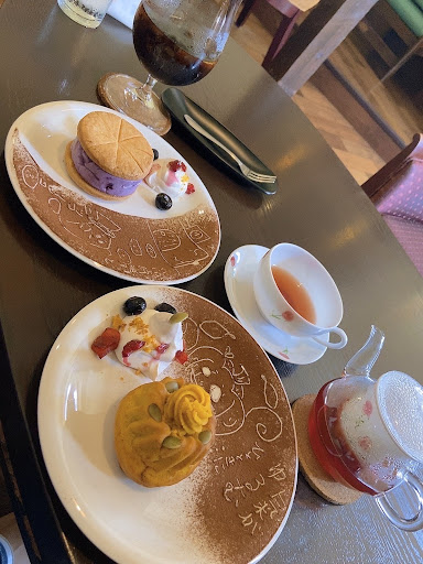 コーヒーの味は、少し酸味があり濃厚。 ローズティーのような名前の紅茶は、専用ティーセットなのか、カップもポットも花柄で可愛く、ティーの色もピンク色。 酸味はあるものの、花の香りがして美味しかった。 女性は喜ぶと思います。恋人はこれも凄く喜んでいました。 店員さんはダンディーでカッコイイのに物腰柔らかで、好印象でした。
