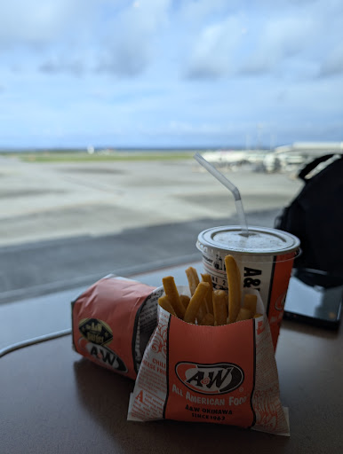 Read moreThe airport branch serves the worst food of all the Okinawan A&Ws. The food were pre-cooked before order, so that they could keep the line moving. Burgers were cold and fries soggy when it gets to you. Menu is also more limited than the other branches, so that they can quickly specialize with a fewer variety. Root beer comes in paper cups instead of the frosted mugs. The staffs were not at fault. It is the management trying to wriggle out as much as they can from genuine A&W lovers looking for one last taste before leaving...