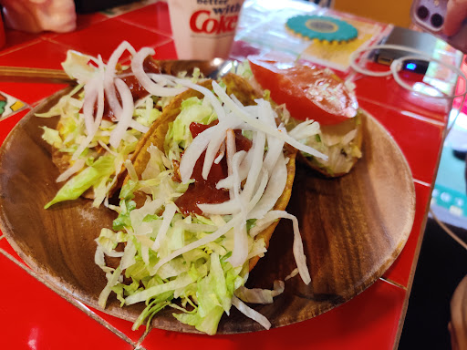 The interior is colourful, the ladies running the place super friendly and the taco's excellent! They make a sort of TexMex deep-fried tostado taco with simple ingredients like chicken and beef.