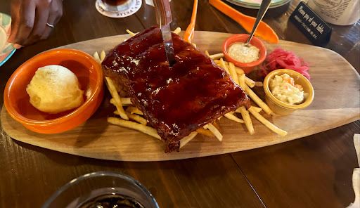 Read moreI read the reviews and decided to try the full rack of baby back ribs with the bourbon bbq sauce. You could also choose South Carolina mustard sauce or a chili cayenne sauce that had a lil kick to it. It came with crispy fries (ranch dipping sauce) and a side of pickled onions that were strangely addictive, sour and crunchy. ちょっと酸っぱいandしゃきしゃき. I also enjoyed a lemonade with my meal. The owner was very kind and checked in on me multiple times. He provided extra bbq sauce upon request and gave me the spicy one to try as well. I was also able to take my leftovers home, a rare option at least in Kyushu. I hope to visit here again. The restaurant was located on 4th floor via elevator and offered late...