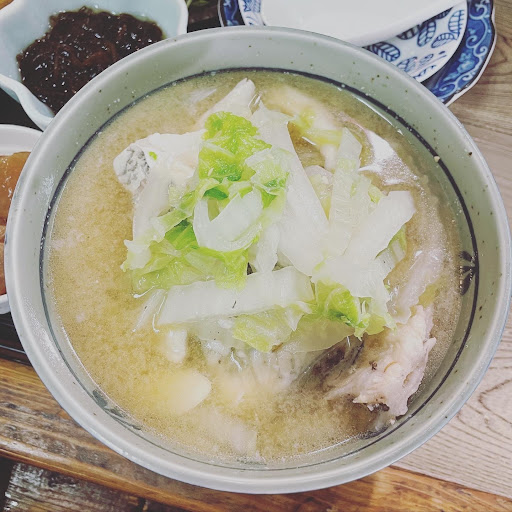 This is probably the most satisfying lunch I had in Okinawa. It's a small restaurant with less than 5-8 seats (depending on the group) so most likely you'll have to wait to get a seat. However the food is totally worth the wait. For 1,000yen you get a big bowl of fish soup, very generous sashimi, fried fish, and two small dishes. Everything was absolutely fresh and delicious, but the fish soup is another level. It felt the soup has been cooked with fish bones for hours with all the flavors and if you're not afraid of eating fish with bones, there are also quite a lot of fish meat left. 100%...