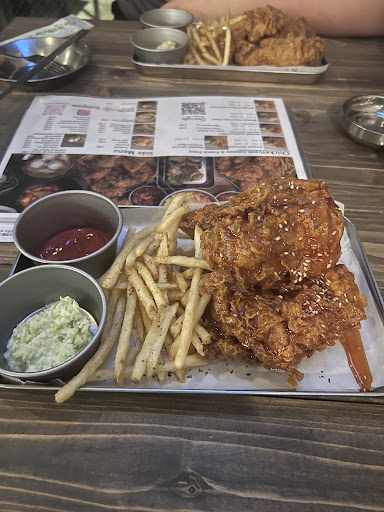 Read moreCrispy, juicy and craveable Korean Fried Chicken! What more can I say?!. I recommend getting the 6 piece meal with 2 flavors to split (for 2 very hungry people). The honey soy and sweet spicy yangnyeom are our favs. The chicken portions are huge and the meal comes with fries, cole slaw, and pickled daikon. The perfect balance paired with fried chicken. There is also an all you can drink option, for the beer drinkers. The vibe is relaxed and the food is delicious. Definitely...