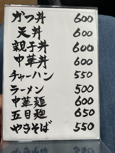 丼はかつ丼、天丼、親子丼、中華丼があり、全て600円