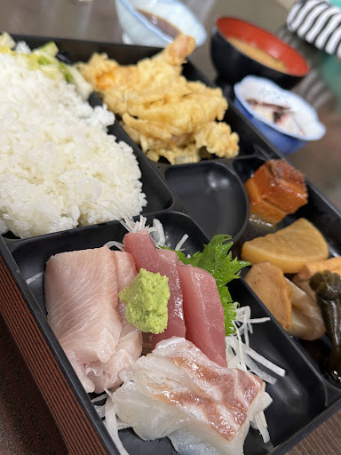 幕の内(特上)、天ぷら、煮付け、刺身、もずく酢、お味噌汁がついて、¥1,200は感謝しかありません。