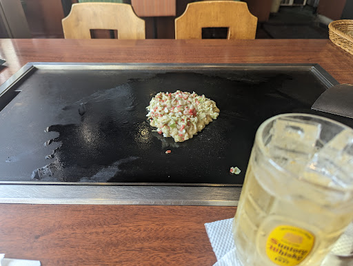 注文したもんじゃとステーキが約10分ずっーと来なくて忙しぃのかと思い待っていたら、いつの間にか注文した旦那のお好み焼きが先に来たので、もんじゃがまだ来てないと女性の店員さんに言ったら「少々お待ちください」と言われて、おばさんが中から来て「お待たせしてすみません。」もない!!