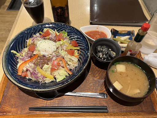 Read moreA cafe-restaurant where you can enjoy local Okinawan cuisine using miso as a base. This restaurant is popular among locals and tourists alike for its very delicious breakfast and lunch. This time we visited for breakfast. There are several breakfast menus to choose from depending on your mood. I chose the most popular one, the Marutama Gozen. As shown in the illustration on the menu, it already looked delicious with many dishes using local ingredients and miso, rich miso soup, salad, natto, eggs, brown rice, and other colorful dishes. I was very satisfied with the taste and quantity. I would like to try the lunch menu and will...