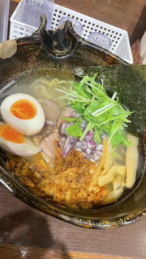 Read moreI came here for lunch with my wife. If you are coming for lunch COME EARLY. They were very busy and we got there like 20 minutes after they opened for lunch. It’s also a ticket machine system so have yen ready. I don’t think it took ¥10,000 bills so have ¥1,000 bills ready We ordered the Chicken Salt Ramen (on accident we wanted the chicken cream salt ramen) with the chasiu rice bowl set and the black garlic ramen.